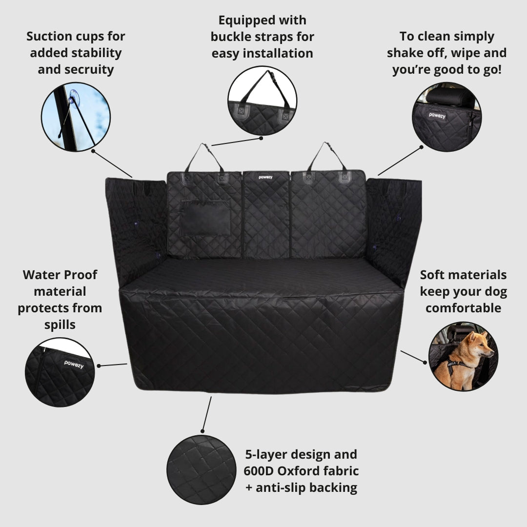 Waterproof with anti-slip backing: Our car seat cover is completely waterproof with side flaps that offer ultimate coverage. The non-slip backing and seat anchors prevent the seat cover from sliding around so you can rest assured your pup is safe and secure.